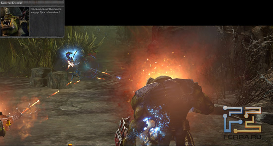 Отдельно немного слов хочется произнести о переводе игры, потому как не случайно Retribution предлагается для скачивания в Steam и на русском, в том числе, языке. Так вот, перевод просто ужасен. Выполненный в лучших традициях пиратских переводов конца 90-х, он очевидно выполнялся несколькими (как минимум) никак не связанными между собой людьми. В пределах одной миссии несколько раз может преображаться произношение и написание имени героев, орфографические ошибки режут глаз, а шрифты, порой, выползают за границы экрана. Остается лишь полагаться на отвечающую за локализацию известную российскую компанию, обещавшую исправить косяки перевода в ближайших патчах. Впрочем, если вы владеете английским, то в любом случае получите значительно больше удовольствия от тяжко переводимых орочьих шуток в оригинале.