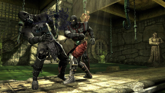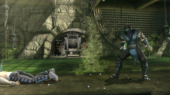 Наконец, Рептилия безвольно обмяк под градом ударов американской кинозвезды. Увы, сакраментальной фразы "Finish Him!" в Story Mode вы не услышите. Да, это так, убить вам не удастся никого - персонажи лишь теряют сознание и вы переходите к следующей битве. В промежутках вам будут показывать двух-трёхминутные ролики, выполненные на движке игры, раскрывающие сюжет и подводящие игрока к следующей битве. Ролики сделаны славно, но вот беда - вблизи большая часть персонажей выглядит отвратно (особенно пострадал зайка Лю Кан), а оцифровка роликов и вовсе привела к появлению артефактов - особенно это заметно на дальних дистанциях.