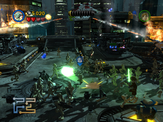 Безжалостные сепаратисты вот-вот растерзают наших героев, но Оби Ван применяет Силу и освобождается от железных оков. Тут же игрока знакомят с первой фичей геймплея - для успешного завершения уровней приходится переключаться между однопартийцами - обычно их трое. Так, Падме может стрелять из бластера, Скайуокер и Оби Ван, Йода и прочие джедаи могут размахивать мечами и применять Силу, клоны умеют применять пульты управления и командовать подчинёнными, дроиды - открывать определённые двери и тому подобное. К сожалению, эта идея обкатана не лучшим образом - зачастую далеко не всегда сразу понятно, способности какого персонажа нужно применять для дальнейшего продвижения по сюжету.