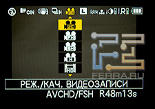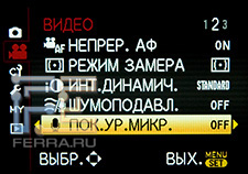 Кроме возможности снимать видео из любого режима съемки с любыми ручными настройками изображения, в меню режима съемки видео можно остановить свой выбор несколько дополнительных возможностей - замедлить или ускорить видеоряд, настроить чувствительность стереомикрофона.