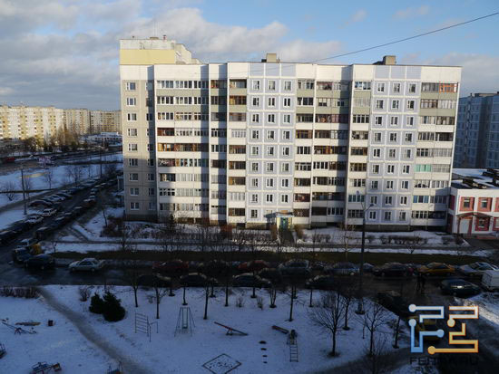 Автоматика баланса белого отработа в режимное время превосходно. Заметны небольшие геометрические искажения дома.