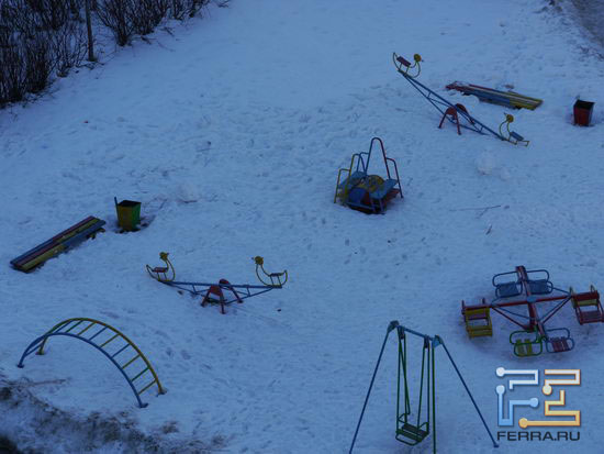 А вот тут в тени автоматика баланса белого дала сбой. В общем-то, снег тогда воистину имел голубоватый оттенок, но людской око воспринимает цвета иначе.