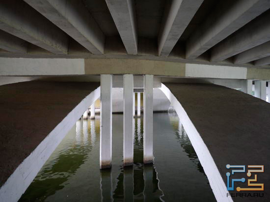 Хорошая работа автоматики при съемки в тени. Но с фикс-объективом 14 мм получить неискаженную геометрию при съемке архитектуры сложно - ее разрешается поправить в Photoshop, причем сделать это можно автоматически, одним кликом.