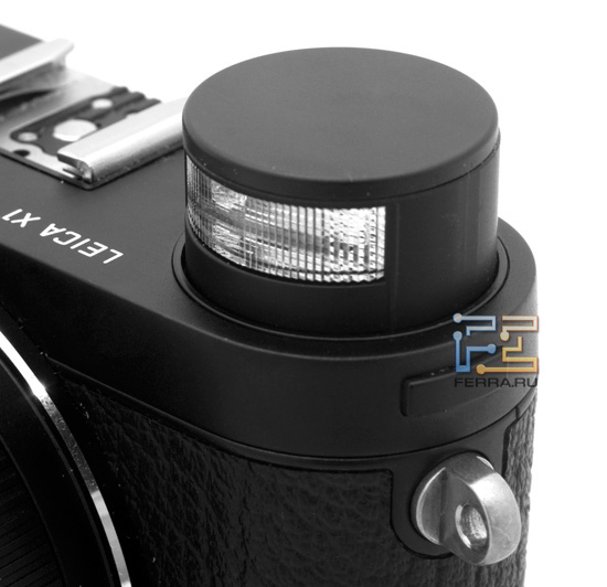 Как уже говорилось, у Leica X1 имеется горячий башмак для установки внешних вспышек, он расположен ровно по оптической оси. Именно поэтому туда удобно устанавливать аксессуар оптический видоискатель. К счастью, в Leica X1 есть и встроенная вспышка.